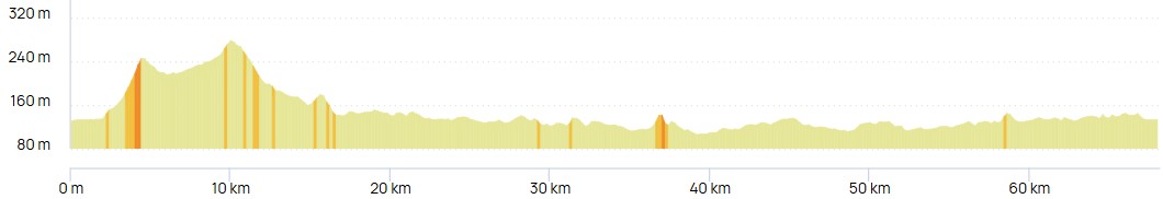 Distance : 68,2km - Dénivelé : 570m