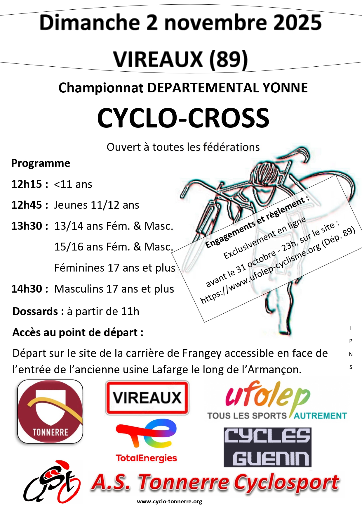 Cyclocross de Vireaux - 2 novembre 2025 samedi 4 octobre 2025 (actualisé le 5 octobre 2025) par webmaster